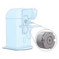 Electric brakes help control the backlash while the system is at rest and help bring things to a smooth stop if there is sudden loss of power from motor failure, power outage, or other event. Loss of electric power de-energizes the brake linings to grip a rotating plate (Figure 1), stopping it from turning or holding it in place once it is at rest. Re-energizing the system disengages the brake, allowing the shaft to rotate freely once again. However, the designer mentioned above did not discover the need for such a braking system until it was almost too late.